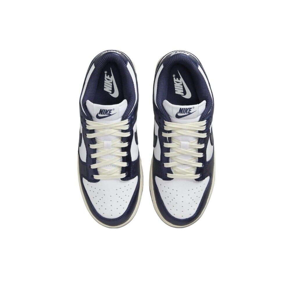 The Nike Dunk Low Vintage Navy sneakers feature the iconic Nike Dunk silhouette, with a leather upper and a durable rubber outsole. The shoes are perfect for everyday wear, and the vintage-inspired design adds a touch of nostalgia to your outfit. So, whether you're running errands or hitting the gym, these sneakers are a must-have for any sneakerhead.