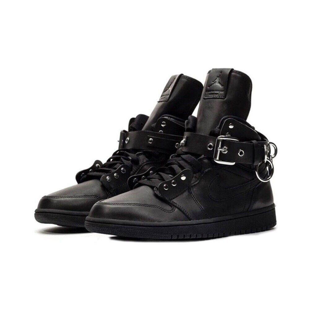 Step up your sneaker game with the Jordan 1 Retro High Strap x Comme des Garcons Black CDG. These high top sneakers feature a sleek black leather upper with a strap for added support and style. The iconic Jordan logo is subtly embossed on the side, while the CDG logo is featured on the heel tab.
