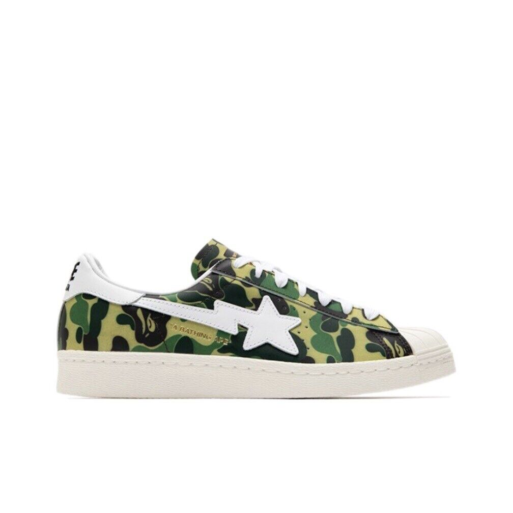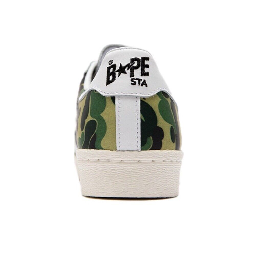 Elevate your sneaker game with the Adidas x Bape Superstar ABC Green Camo. This collaboration between Adidas and Bape is a nod to the 80s, featuring the iconic Superstar silhouette with a unique green camo pattern.