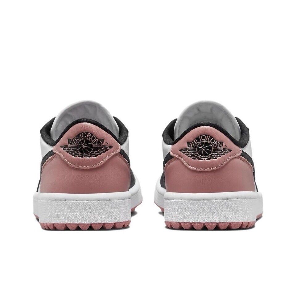 The Air Jordan 1 Golf Low Rust Pink Golf Shoes in size 10.5 are a stylish and functional choice for any golfer. Made with a white leather upper and featuring the iconic Jordan branding, these sneakers offer both comfort and performance on the golf course. The low top design and athletic style make them a versatile option for any casual outfit, while the durable construction ensures long-lasting wear. Perfect for the golf enthusiast who wants to make a statement on the course.