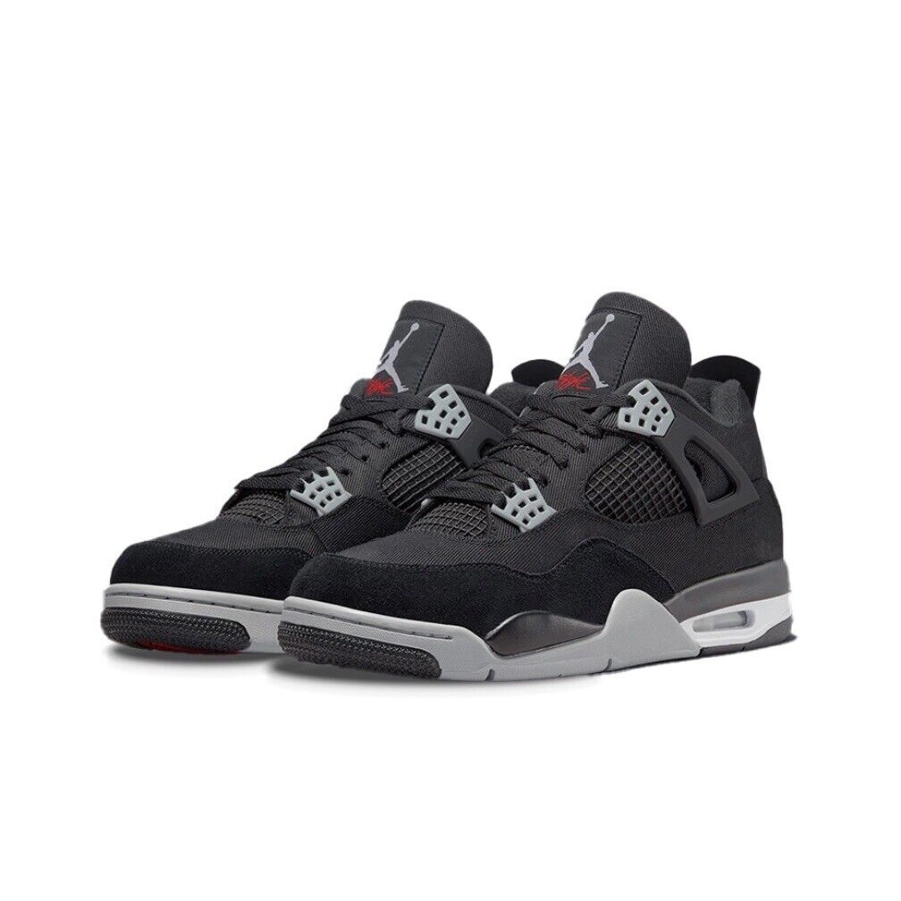 Step up your sneaker game with these Jordan 4 Retro SE sneakers in size 10. The shoe shaft style is mid-top, perfect for both casual and athletic wear. The black canvas upper and lining material add durability and a sleek look to the sneaker.