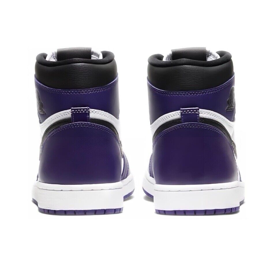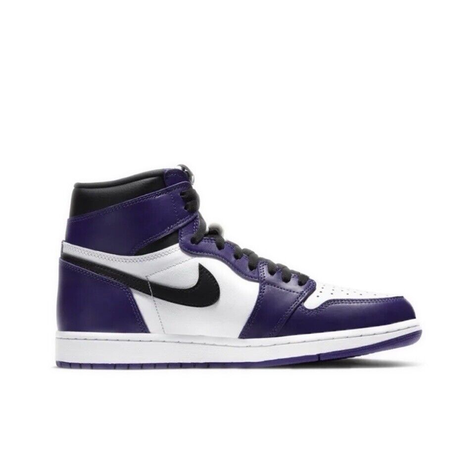 Step up your sneaker game with the Jordan 1 Retro OG High Court Purple 2.0. These high-top sneakers feature a stylish purple colourway that's sure to turn heads. Made with premium leather and featuring the iconic Nike swoosh, these sneakers are both durable and fashionable.