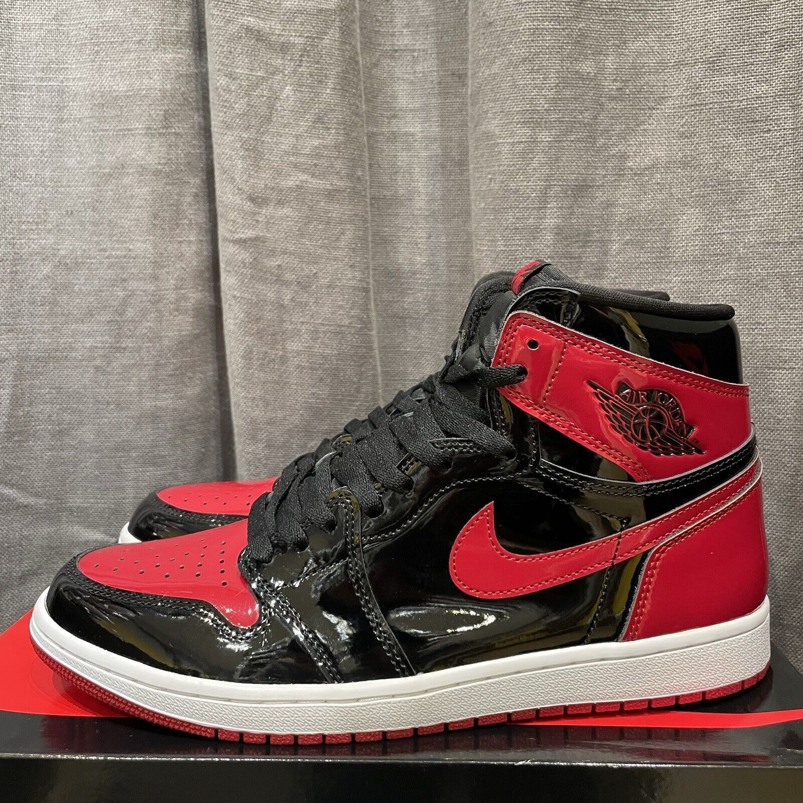 The Jordan 1 Retro OG High Patent Bred in size 11 is a must-have for any sneaker enthusiast. Featuring the iconic Jordan brand, high-top design, and bold red colourway, these sneakers are a stylish addition to any wardrobe. With a 2021 release year, these athletic shoes combine comfort and retro flair, making them a standout choice for men's footwear.