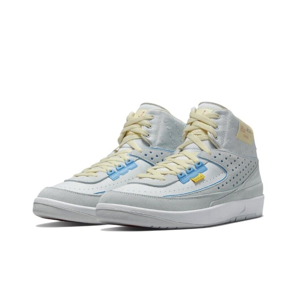 The Jordan 2 Gray Fog Union is the perfect addition to any sneaker collection. This mid-top sneaker features a grey colourway with a mix of suede and leather materials, and the iconic Jordan wings logo on the tongue.