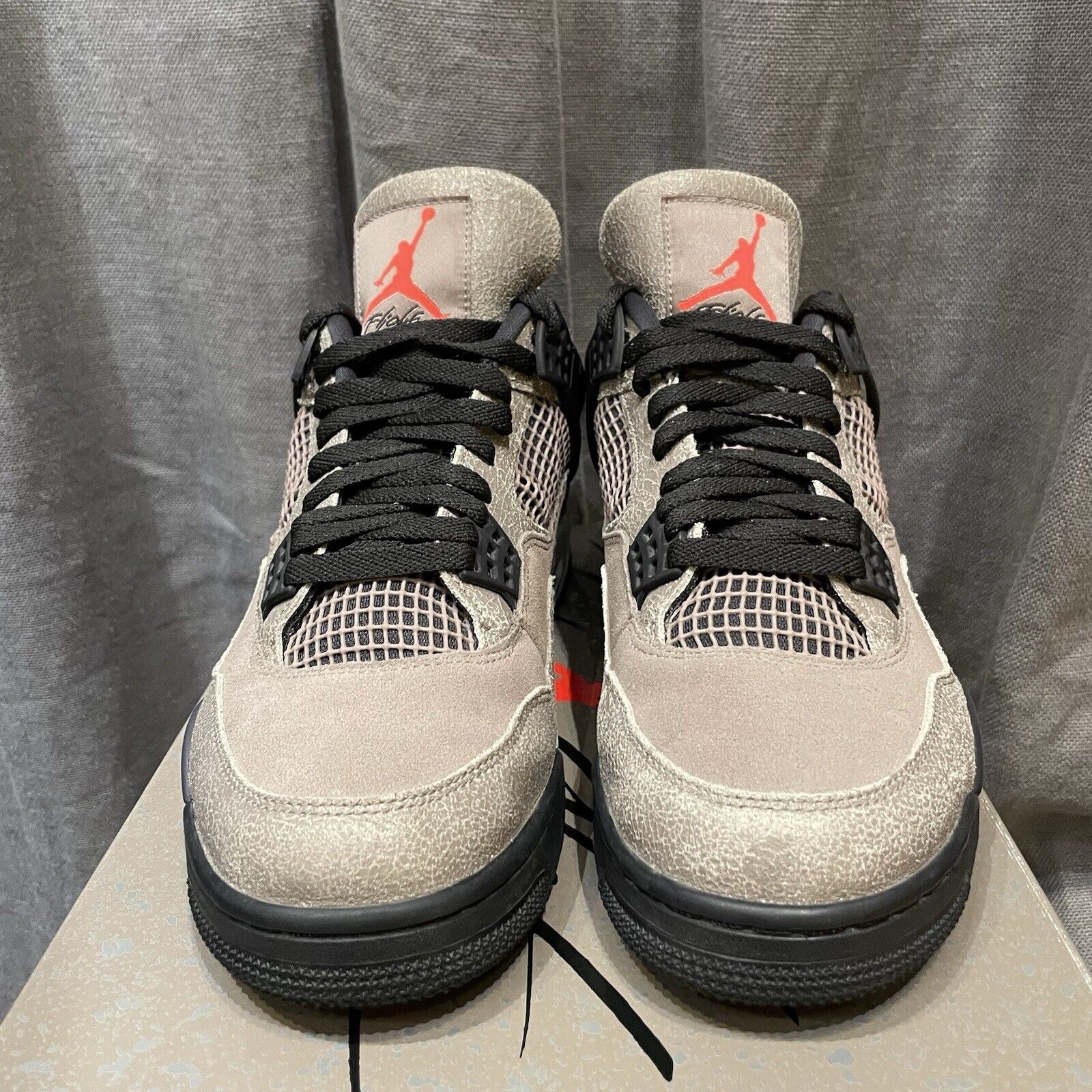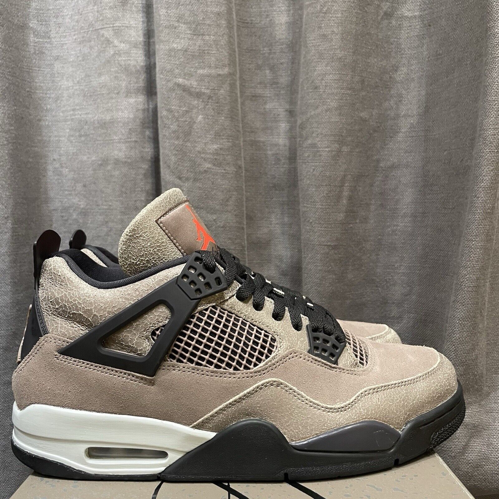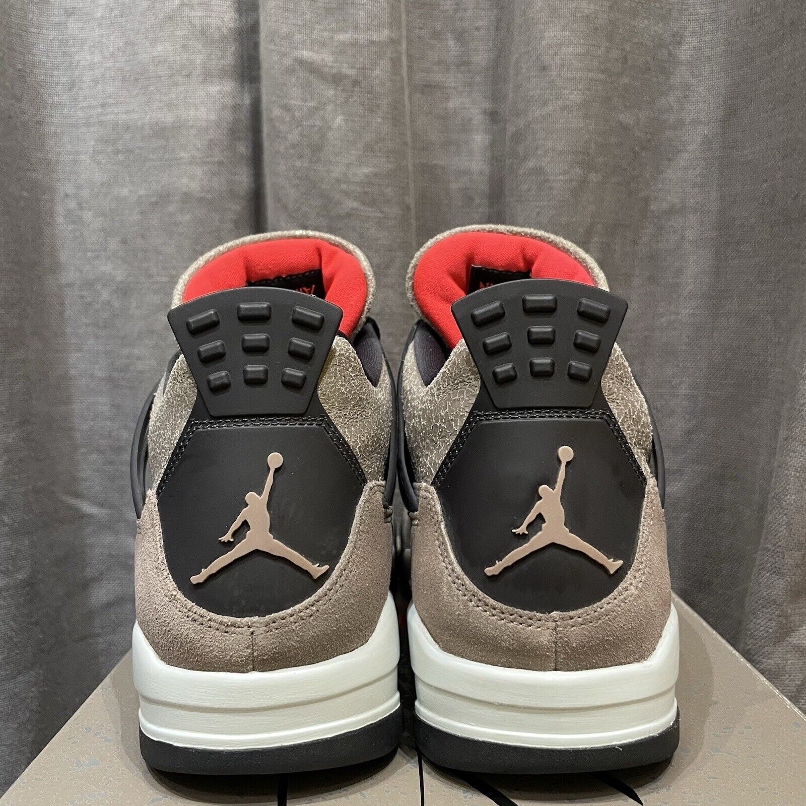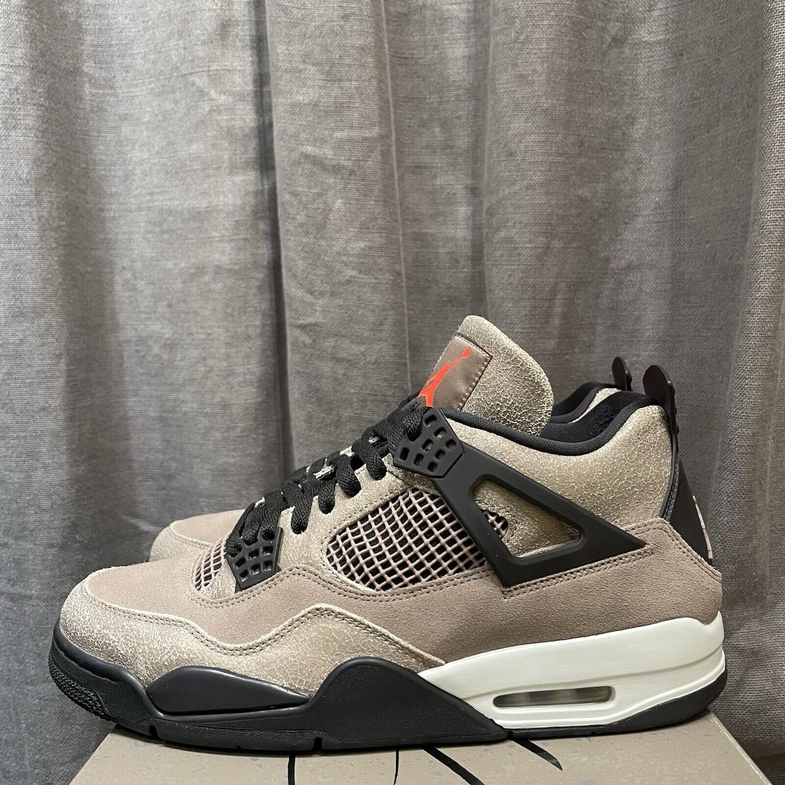 The Jordan 4 Retro Mid Taupe Haze in size 11 is a stylish athletic sneaker perfect for men who love a touch of retro flair. Made with a suede upper in a brown colour, these Air Jordans from the 2021 release year are a must-have for any sneakerhead. With a low top shaft style and the iconic Jordan brand, these shoes are both fashionable and functional for everyday wear or to add a sporty edge to any outfit.