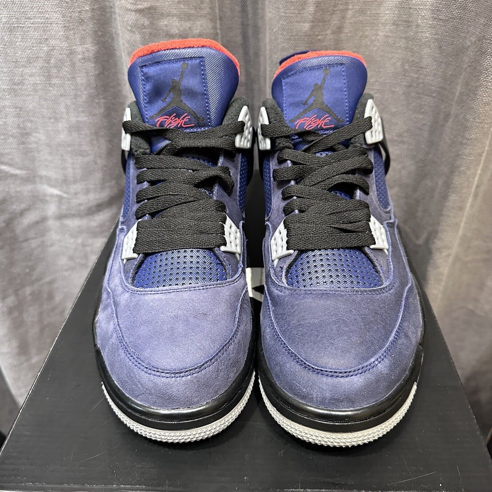 Stay stylish and warm this winter with the Jordan 4 Winterized Loyal Blue Eminem Encore sneakers. These low-top sneakers feature a blue colourway with a striking Eminem Encore design on the tongue and heel.