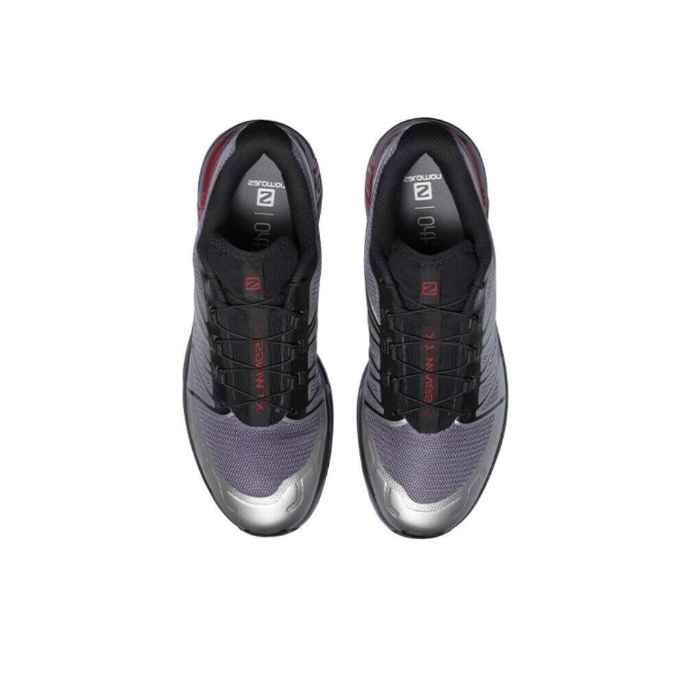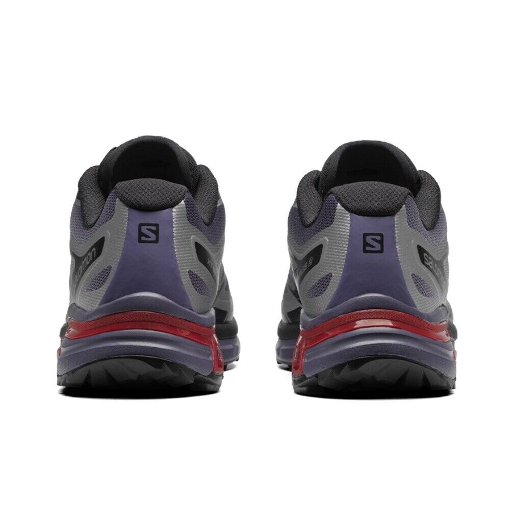 New with box Salomon XT Wings 2 athletic sneakers in silver, size US 13. The perfect shoe for any sport or outdoor activity, featuring the Salomon XT product line for high-performance and durability. The sleek silver design with the iconic Salomon logo adds a touch of style to any workout outfit.