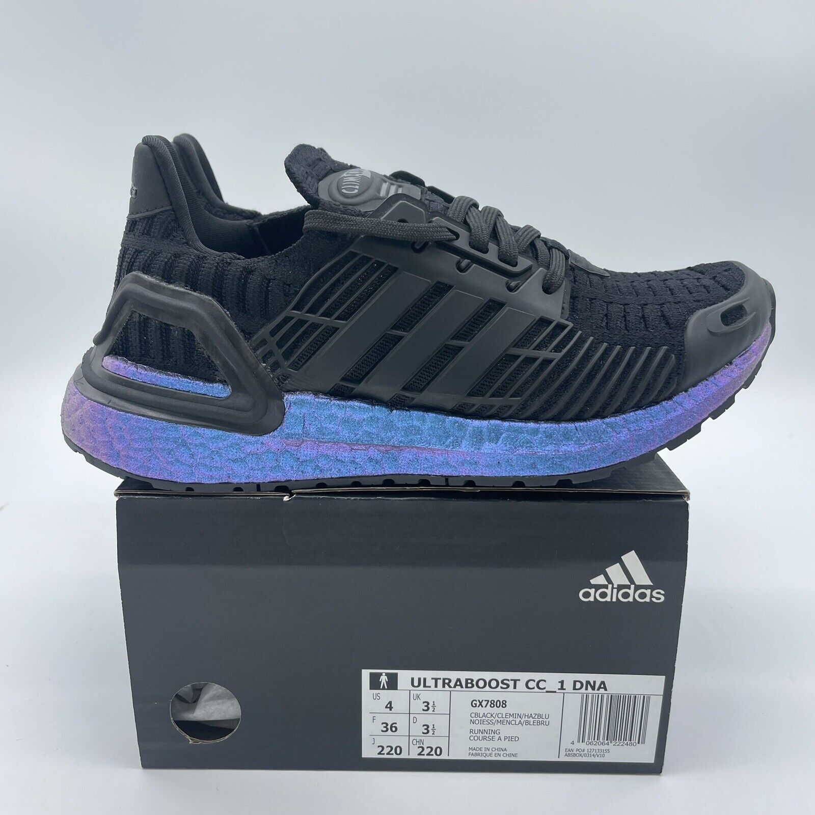 Step up your running game with the adidas UltraBoost Climacool DNA sneakers. These sneakers come in a sleek black colour with a low top shoe shaft style and a comfortable primeknit upper material. The sneakers are designed to fit UK shoe size 3.5, US shoe size 4 and EU shoe size 36 for a snug fit.