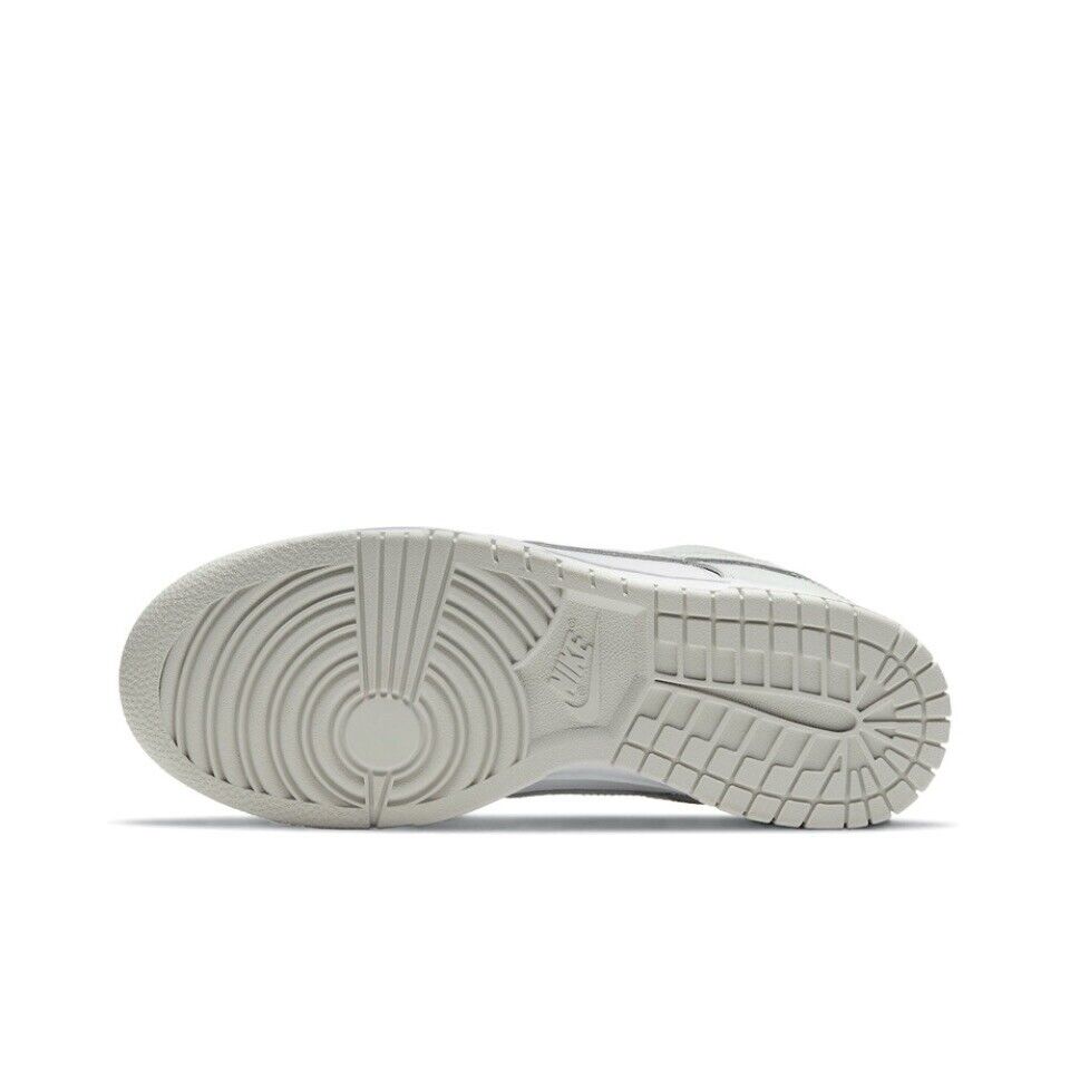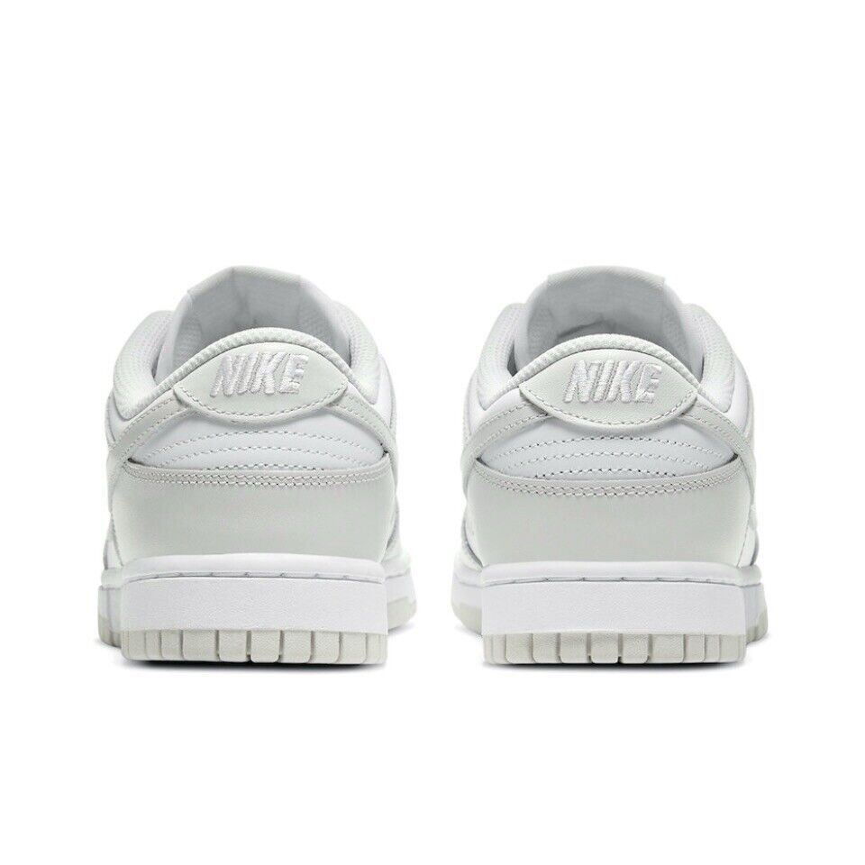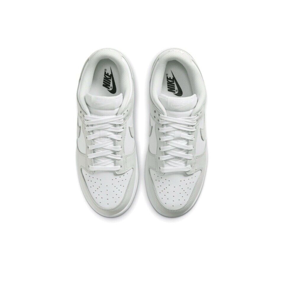 The women's Nike Dunk Low Photon Dust (W) is made of white leather with Photon Dust leather overlays and Swooshes. A woven Nike label on the tongue and embroidered Nike branding completes the design. The women's Nike Dunk Low Photon Dust (W) released in May of 2021