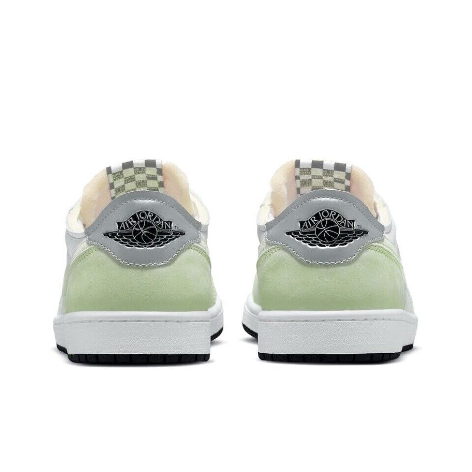 The Air Jordan 1 OG Low Ghost Green in size 8 is a stylish sneaker by Jordan, perfect for athletic activities. This model features a low top shoe shaft style and is made of high-quality leather in a vibrant green colour. With a sleek design and comfortable fit, these shoes are a must-have for men who appreciate both style and performance on the court or in the streets.