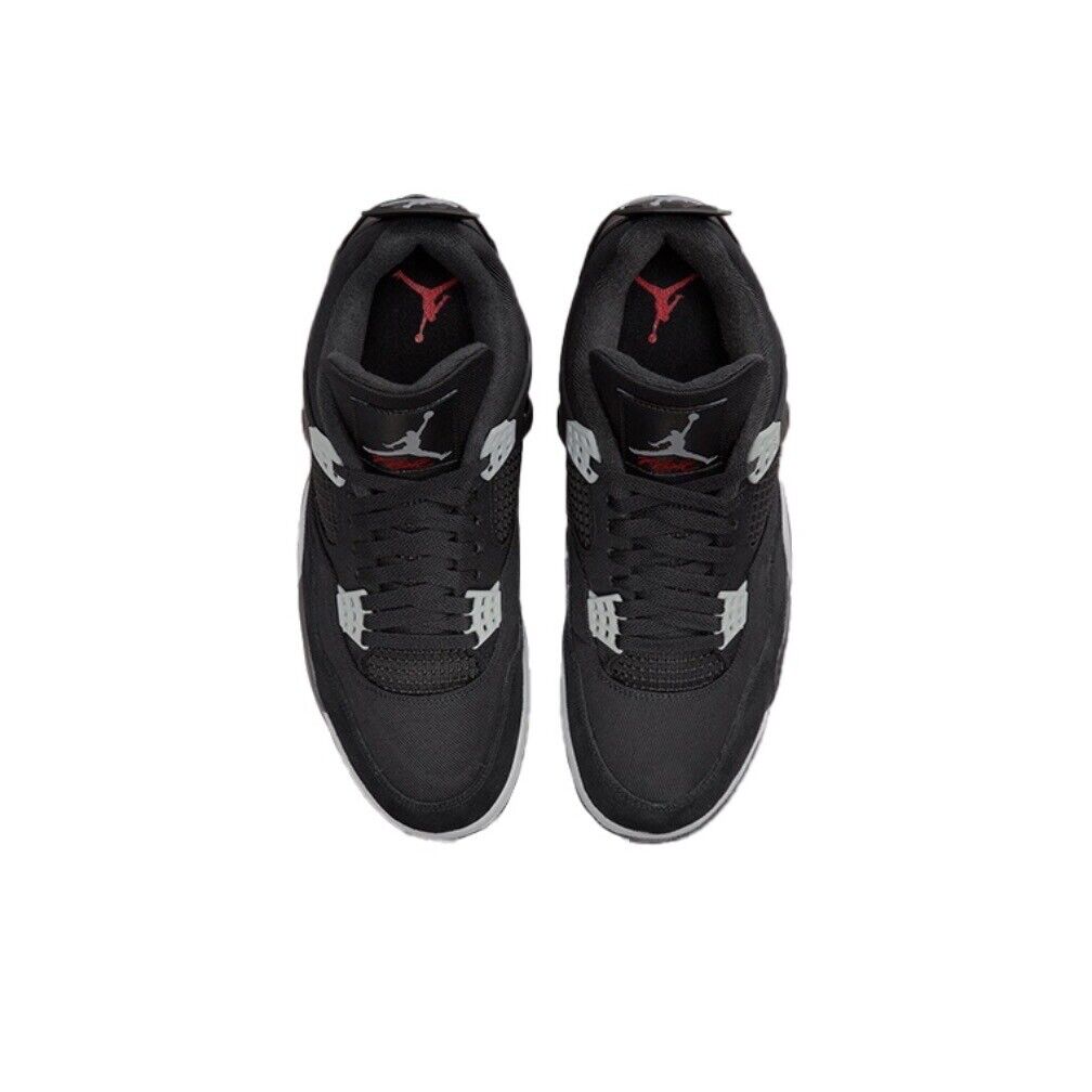 Step up your sneaker game with the Jordan 4 Retro SE Black Canvas. These mid-top sneakers feature a sleek black canvas upper with iconic Jordan branding on the tongue, heel, and sole. The black cat character adds a touch of personality to the classic retro design.