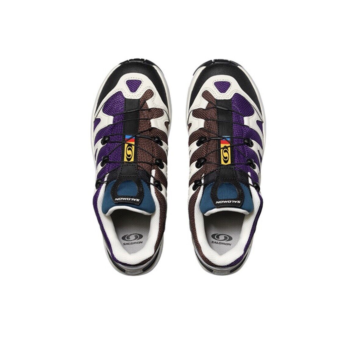 Experience the comfort and durability of the Salomon XA Pro 1 sneakers. Designed for men with an active lifestyle, these low top sneakers feature a multicoloured design with grape and chocolate fondant accents. The shoes come in a US size 8 and are brand new with box.