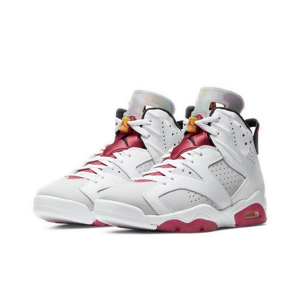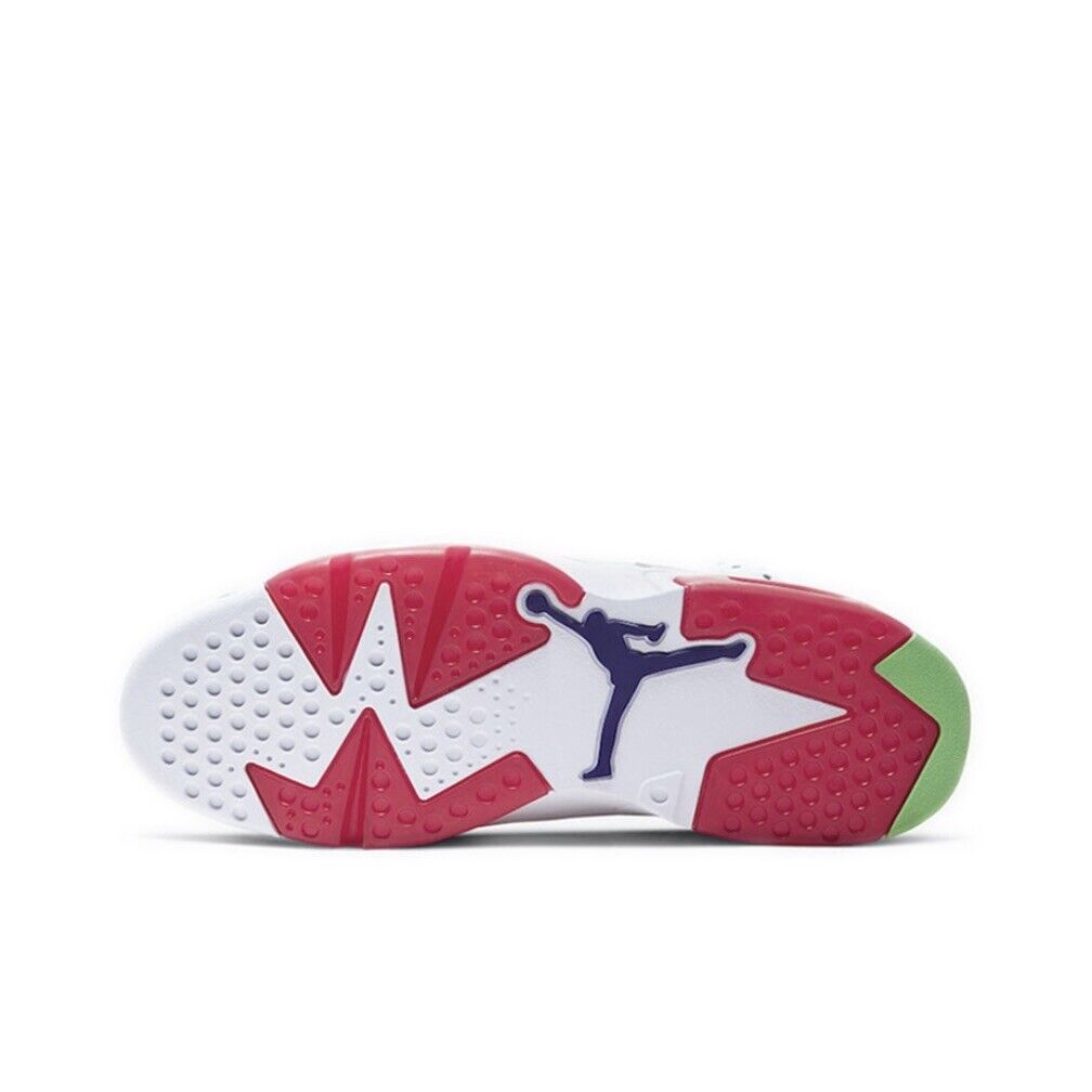 Step up your sneaker game with the Jordan 6 Retro Hare 2020. This mid-top sneaker features a sleek grey leather upper with pops of vibrant color, giving it a retro yet modern look. The Air Jordan 6 model is a classic that has been updated with a fresh colorway, making it perfect for any sneakerhead's collection.