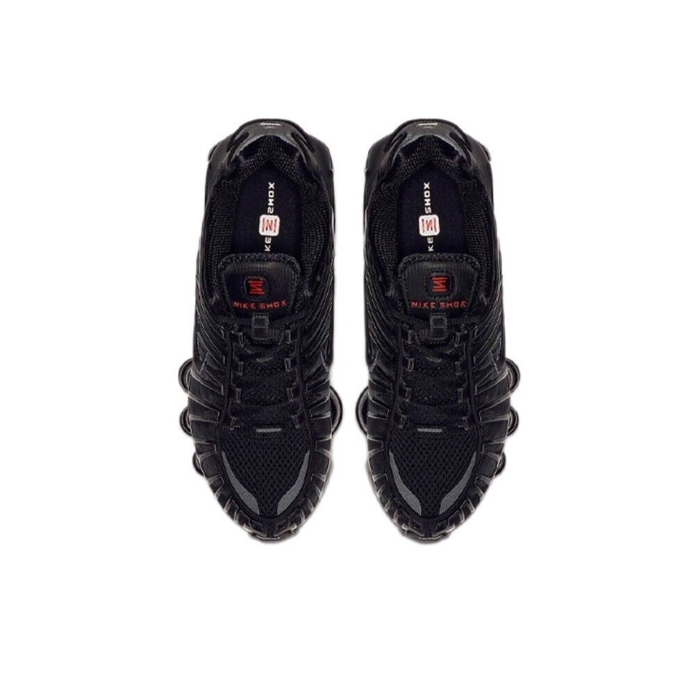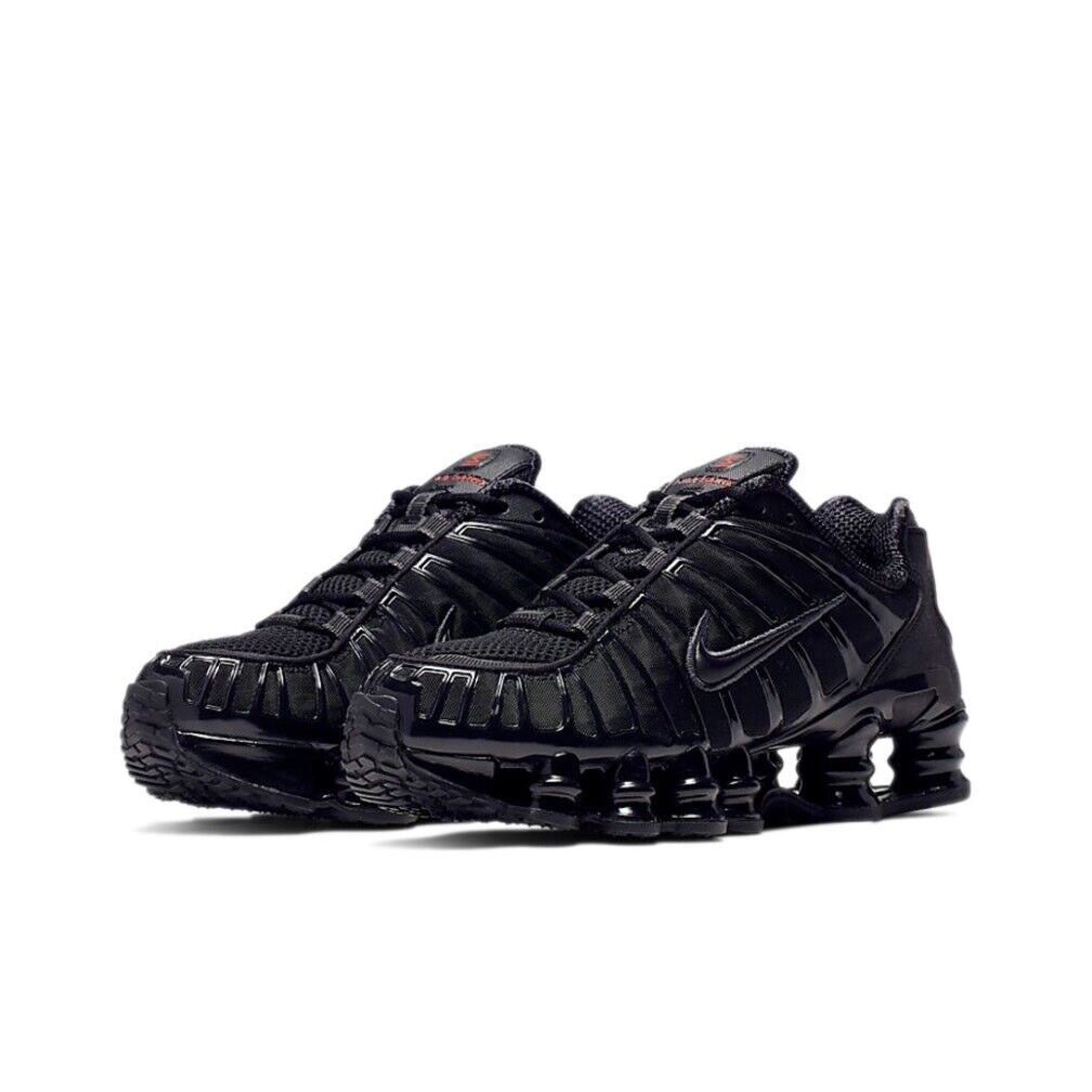 Step up your shoe game with the Nike Shox TL in Triple Black TN. These sneakers feature a sleek black mesh upper with Nike's signature Shox cushioning technology for a comfortable stride. The sneakers also boast a Women's US size 14, Men 12.5, making them perfect for those with larger feet.